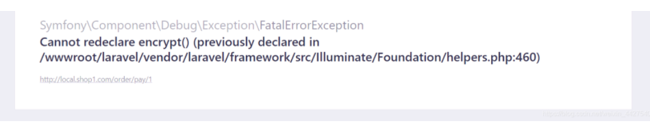 2.出现一个encrypt或者decrypt冲突的错误(因为laravel自带encrypt和decrypt方法)修改alipay/aop/AopEncrypt.php的方法名即可 如:
