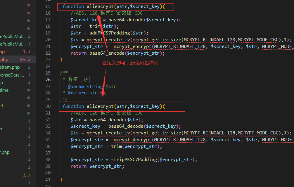 解决:为(encrypt()方法和decrypt()方法重命名 这里我加了 ali前缀)