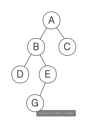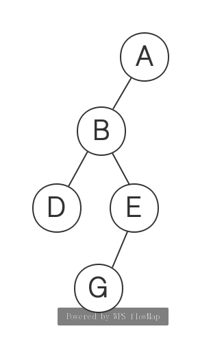 在中序中,结点GE的排序为GE,因此G在E的左支上,由此绘出G的位置