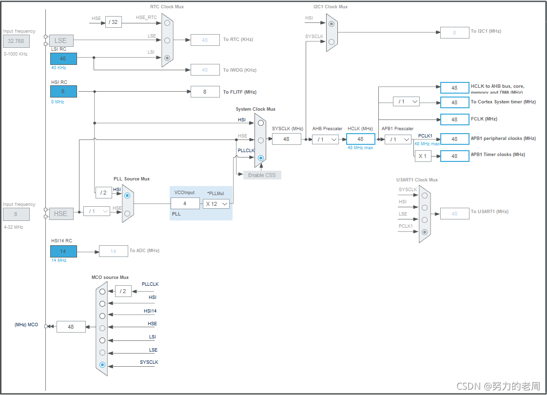 由于板子没有焊接晶振。配置方法如下: