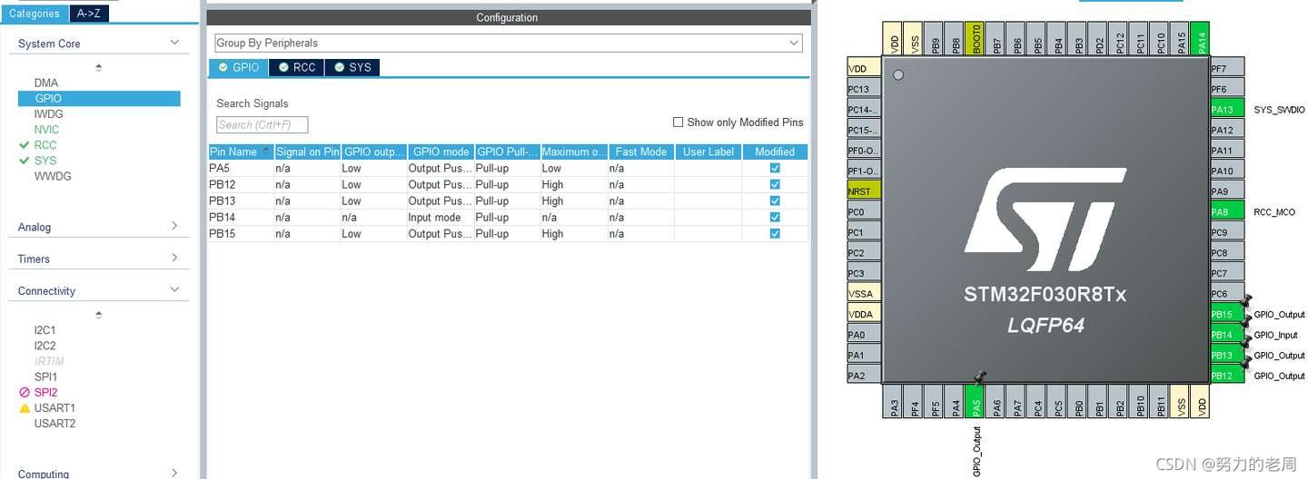 注意,代码是将 PB14 配置为输出的。这个没什么影响,因为没有使用到 PB14。正确应该将 PB14 配置为输入。我懒得重新生成代码了。