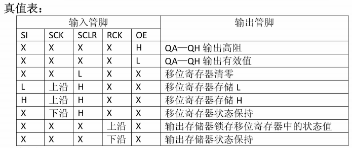 74HC595真值表
