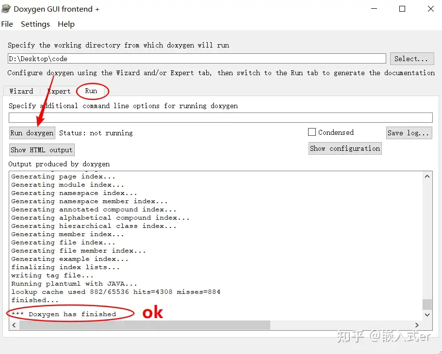 5、最后再run选项卡中点击Run doxygen就可以生成了。