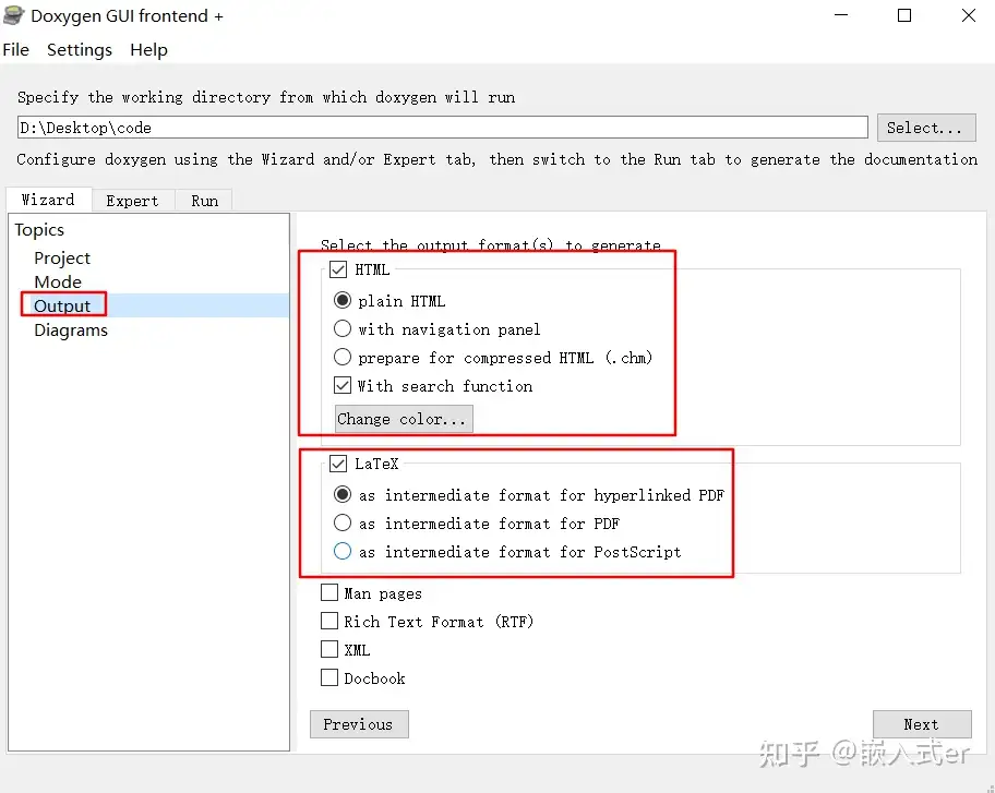 4、选择生成文档的格式,默认可以生成html和tatex格式的。