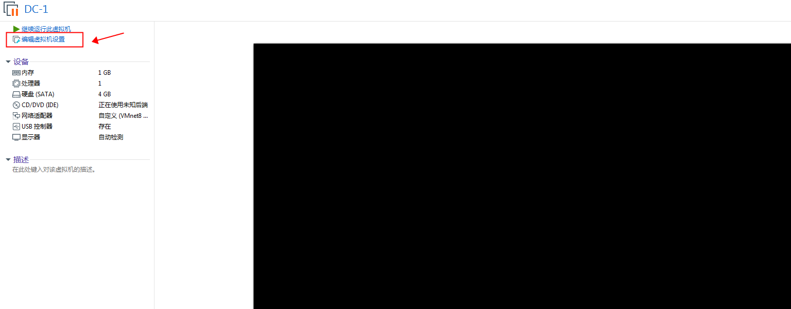 第三步:加载完成后,在DC-1虚拟机这边选择“编辑虚拟机设置”