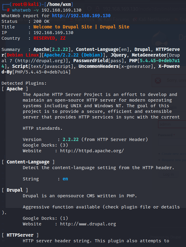 whatweb -v 192.168.169.130