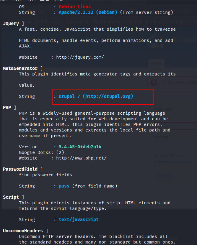 第二步:查看Drupa框架是否有漏洞
