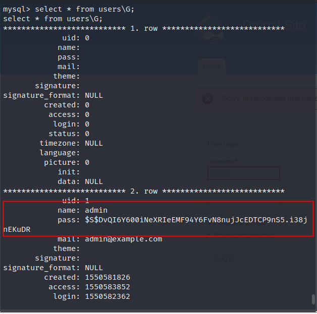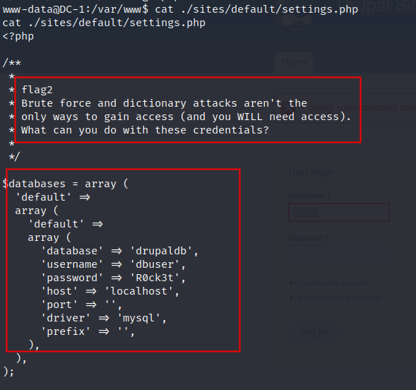 cat ./sites/default/settings.php //捕获该文件
