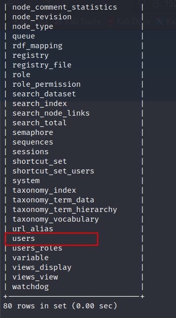use drupaldb; //进入drupaldb库