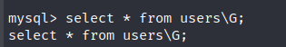 select * from users\G; //查看users表的信息