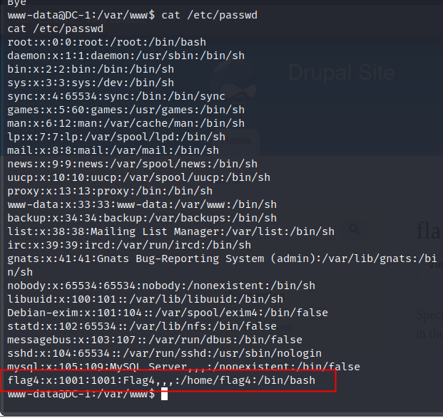 第十八步: 根据提示可以知道接下来去查看passwd,还需要提权。
