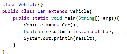如果运算符左侧变量所指的对象,是操作符右侧类或接口(class/interface)的一个对象,那么结果为真。