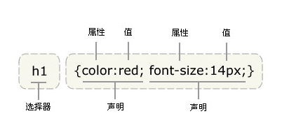 CSS语法:选择符{属性:属性值;属性:属性值;}