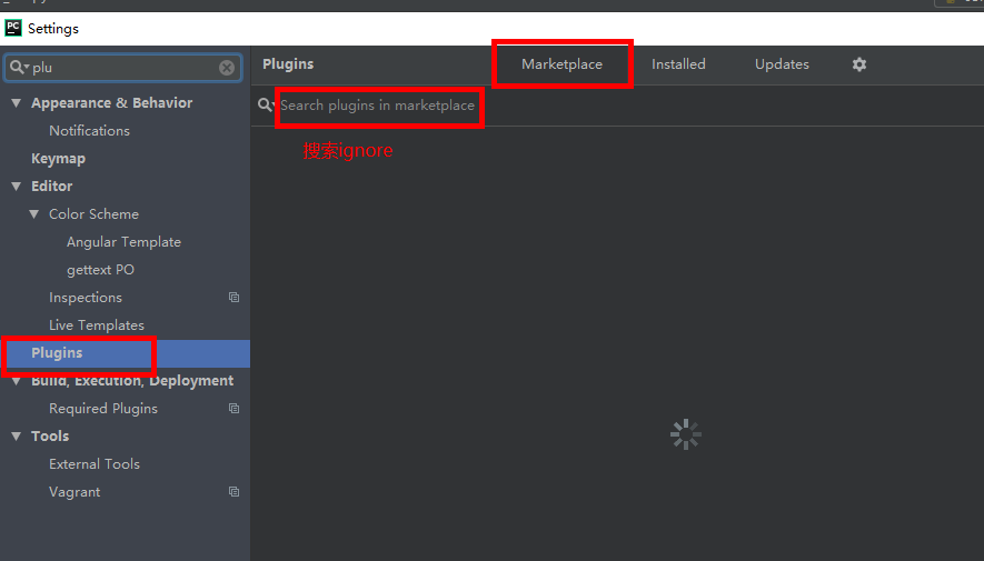 2.Pycharm-->File-->Settings-->Plugins-->搜索ignore-->点击安装-->重启Pycharm