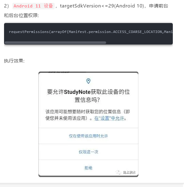 从 Android 10 系统的设备开始,就需要请求后台位置权限
