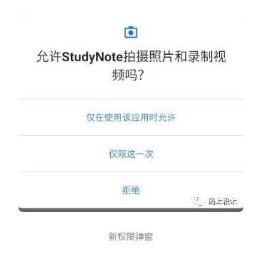 简单的说,就是在申请与位置信息、麦克风或摄像头相关的权限时,系统会自动提供一个单次授权的选项,只供这一次权限获取。然后用户下次打开 app 的时候,系统会再次提示用户授予权限。这个影响应该不大,只要我们每次使用的时候都去判断权限,没有就去申请即可。放一张新版本权限获取样式: