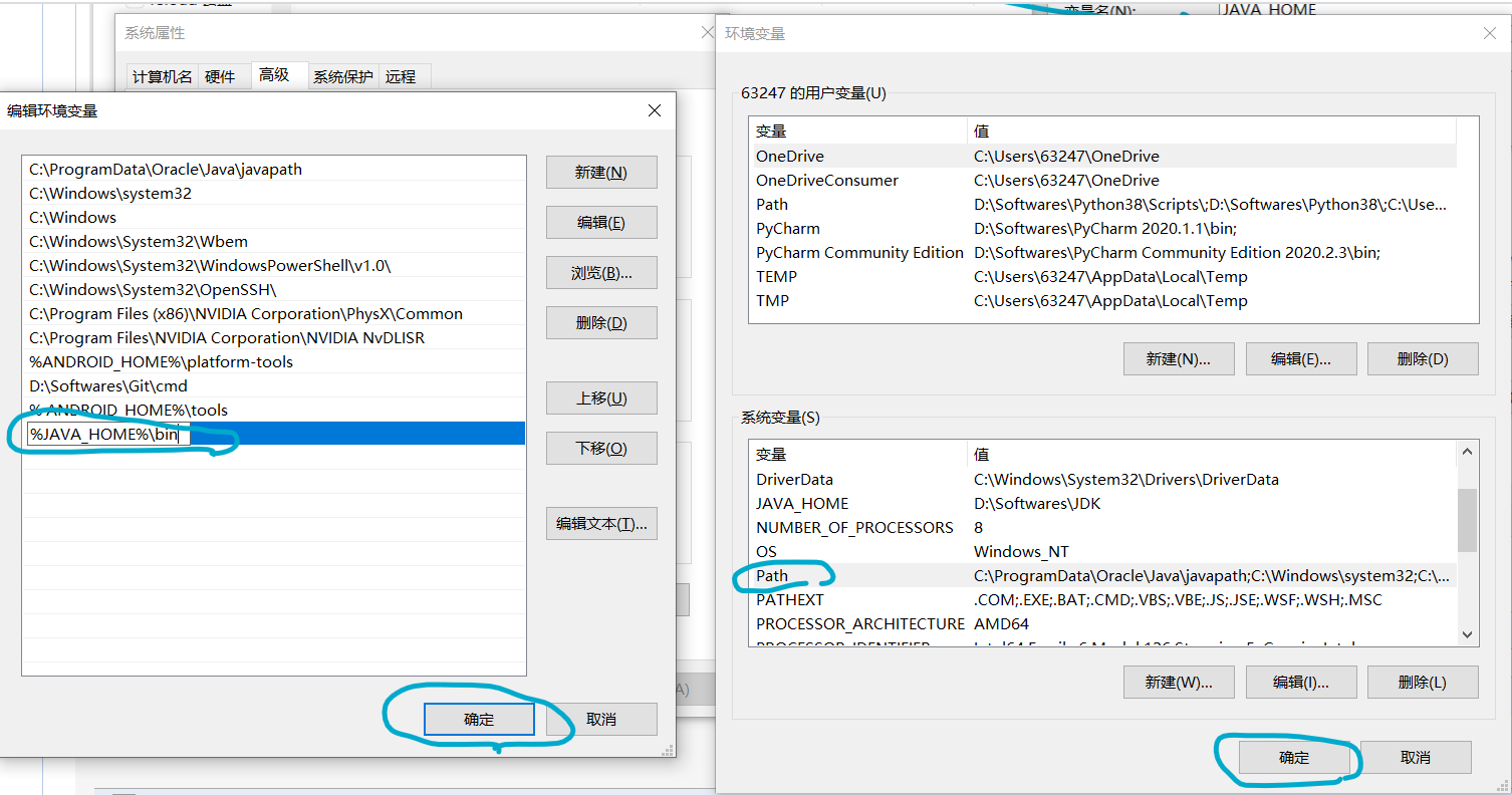 双击Path-->添加在原变量值的最后面加上 %JAVA_HOME%\bin-->确认
