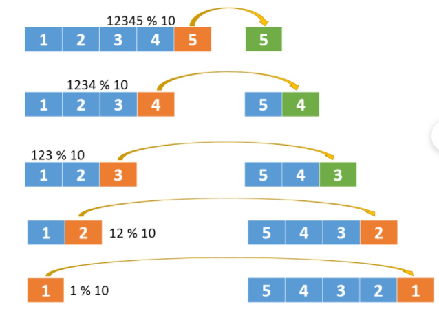 2.x 不断与10取余,得到最后的数,并通过x10变成高位的数