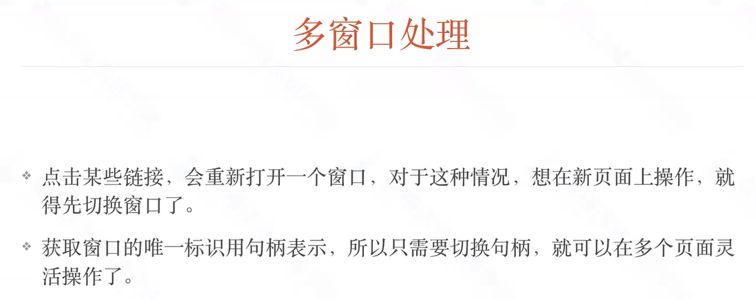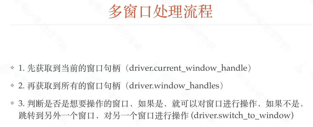 window_handle 存储着所有的窗口(列表形式存储),可打印出来看看是需要用哪个窗口,然后用switch to window 调用对应索引的窗口
