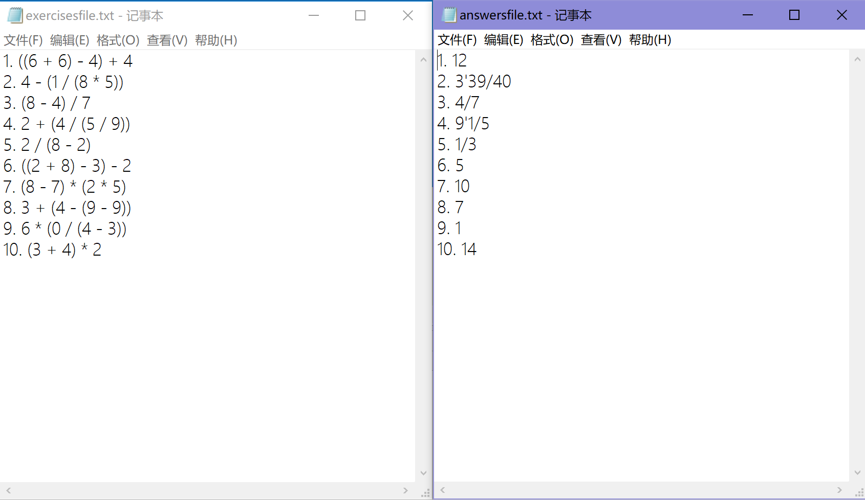 4. 生成的题目中如果存在形如e1 / e2的子表达式,那么其结果应是真分数
