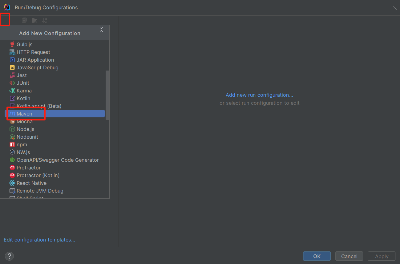 点击右上角的“Add Configurations”,打开“Run/Debug Configurations”窗口