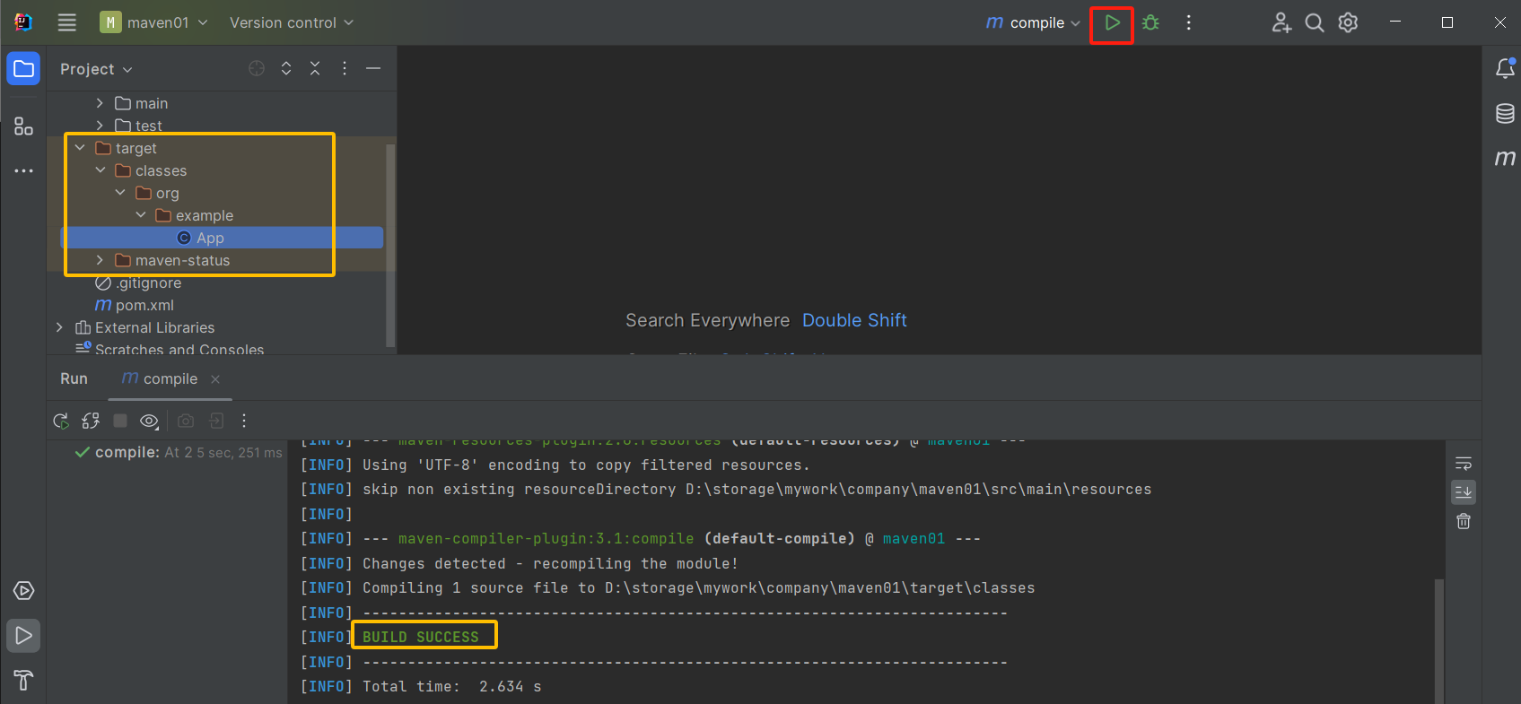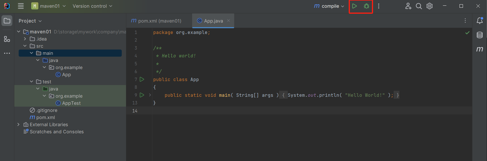执行编译命令,两个图标分表代表“普通模式”和“调试模式”