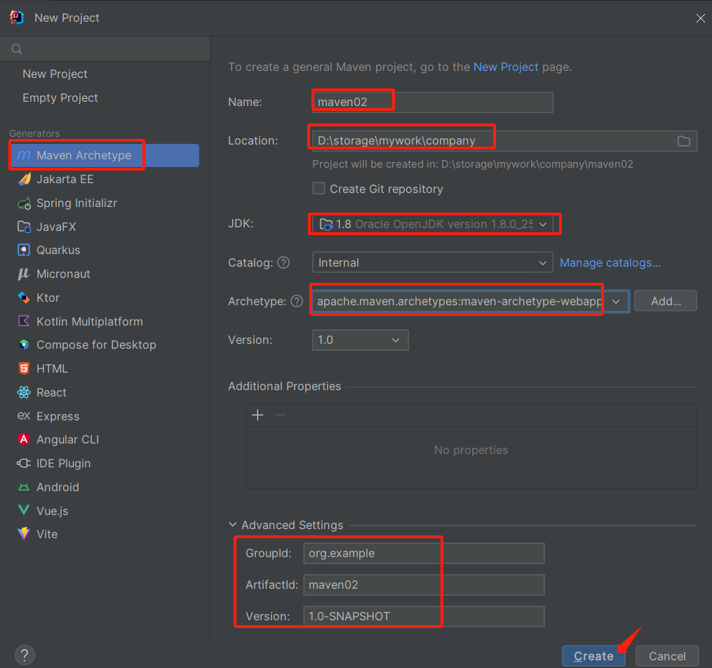 - 创建Web项目与创建Java项目步骤基本一致,区别在于选择Maven模板(web项目选择webapp),如图。