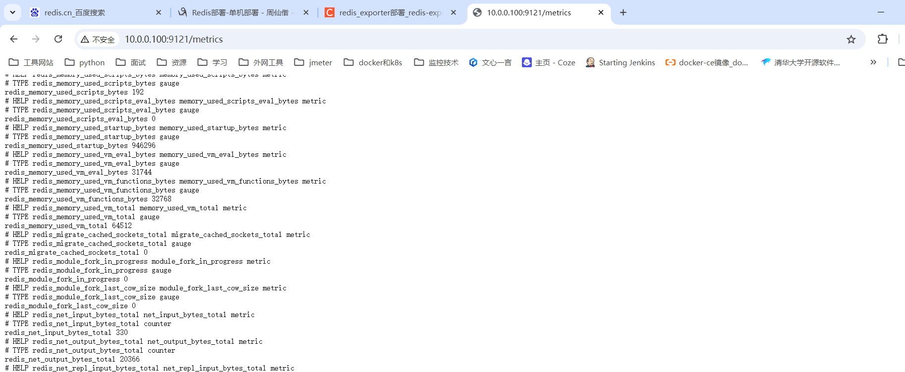 执行后再浏览器输入 http://10.0.0.100:9121/metrics 可以看到服务启动成功