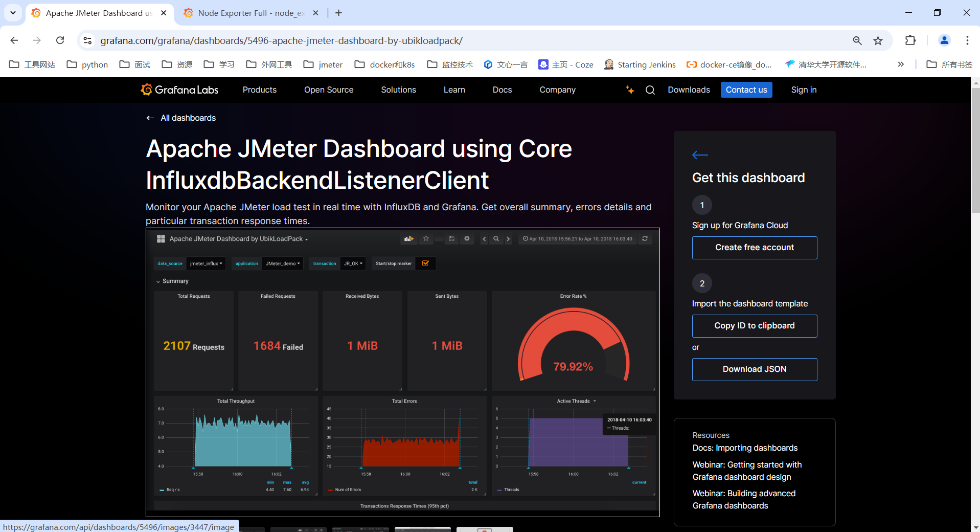 Download JSON:点击这里可以下载模版的JSON文件,当部署的grafana环境没有网络访问条件时,可以复制这个JSON文件