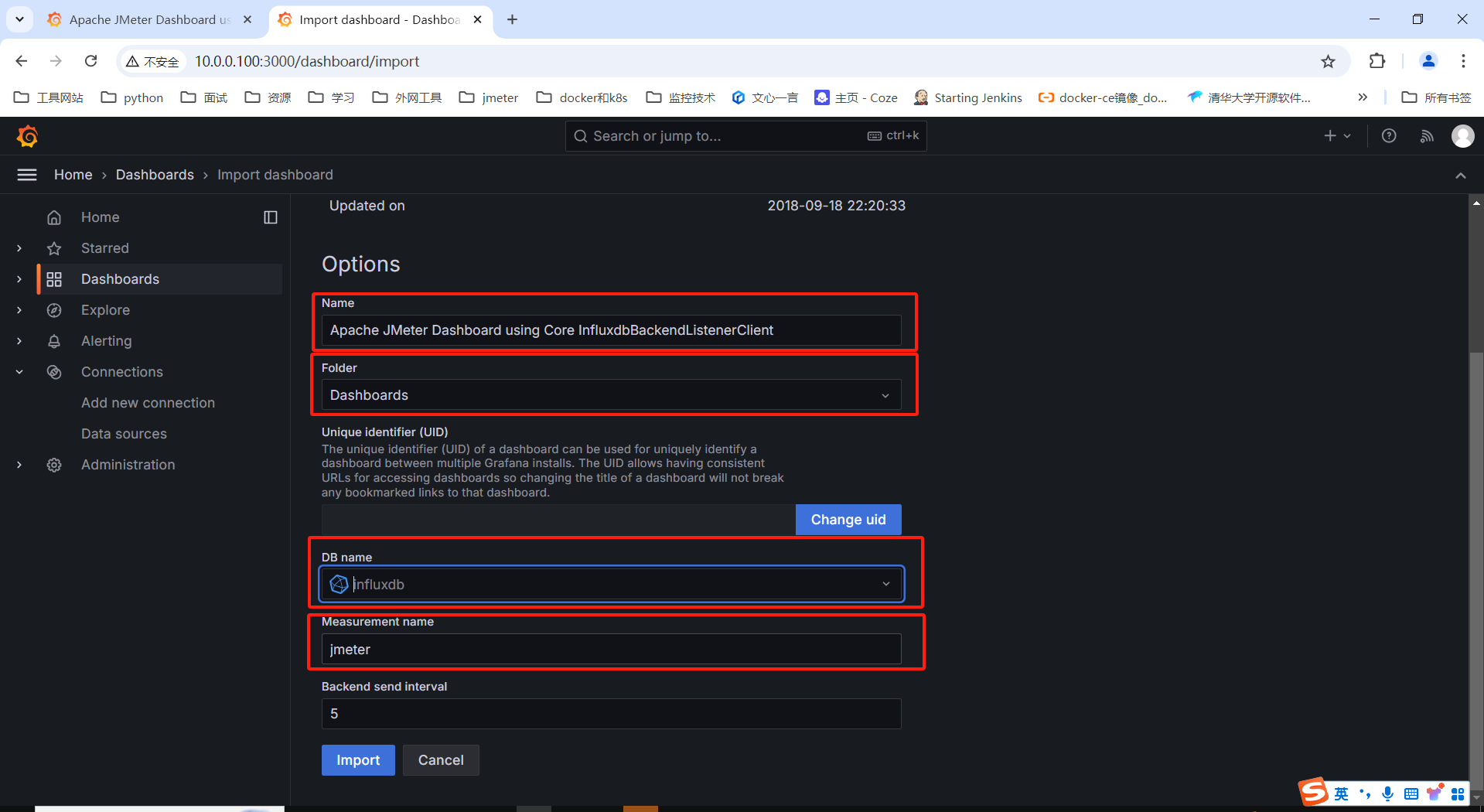 性能测试监控平台搭建-grafana配置Dashborads-监控Jmete压测数据(十二)