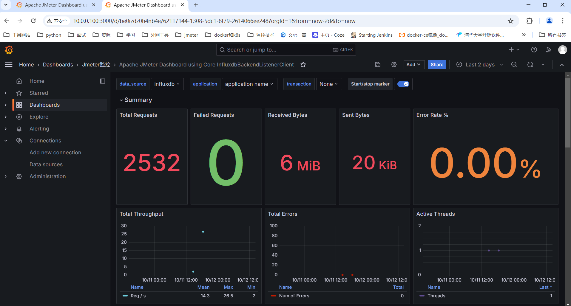 使用influxdb中的Jmeter的压测上报数据,对Jmeter压测进行监控