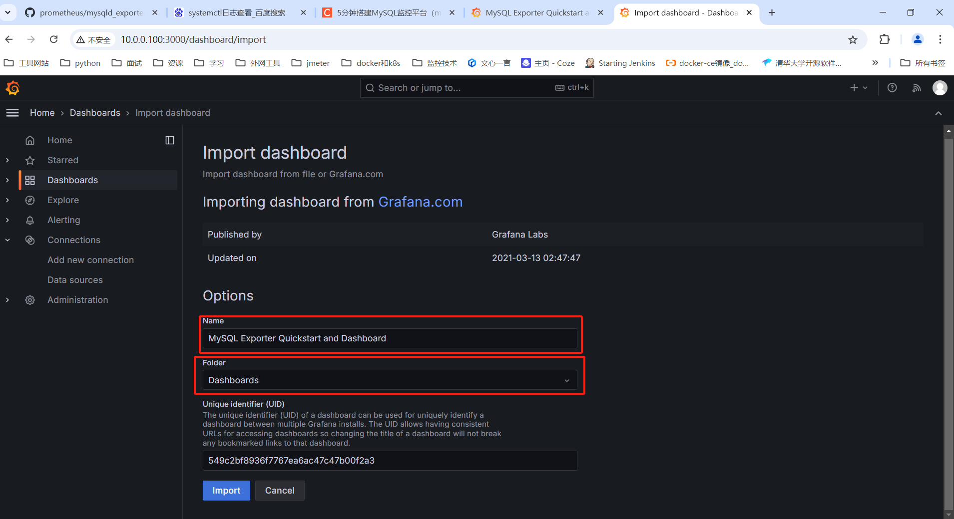 性能测试监控平台搭建-grafana配置Dashborads-监控mysql(十三)