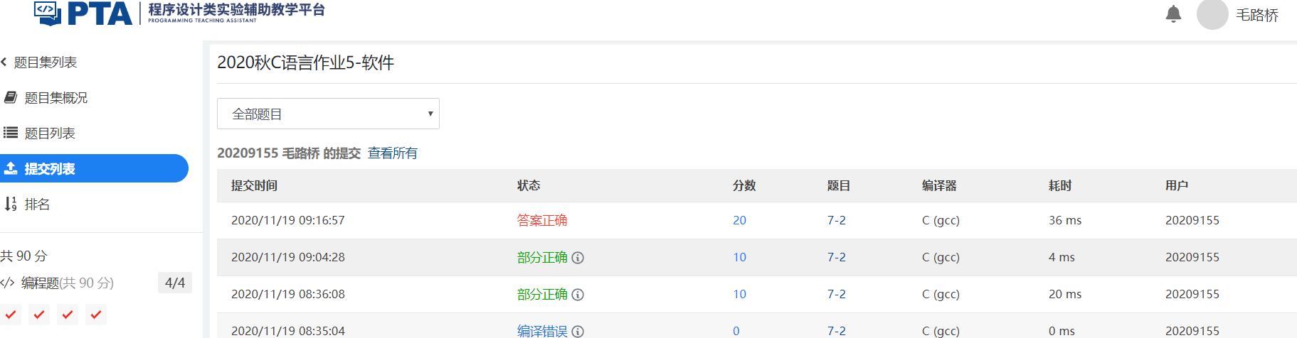 1.1.4 PTA提交列表及说明