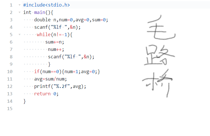 数据处理:while(n!=-1){ sum+=n;num++; }if(num==0){ num=1;avg=0; } avg=sum/num;。
