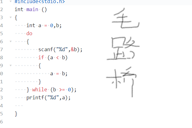 数据处理:运用了do while循环语句和if条件语句,在循坏语句镶嵌一个if语句,用来比较输入值与a的大小。a = b,将b赋值给a。