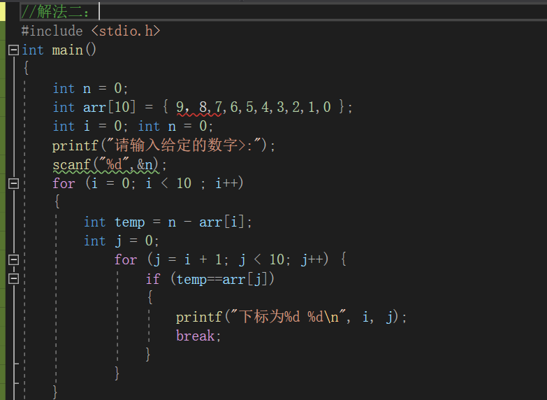 解法二:对数组中的每个数字arr[i]都判别Sum-arr[i]是否在数组中。