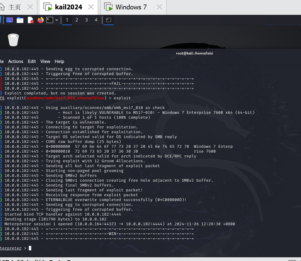 Use3模块需要关闭防火墙smb流量的出入,攻击效果检查是否有改漏洞