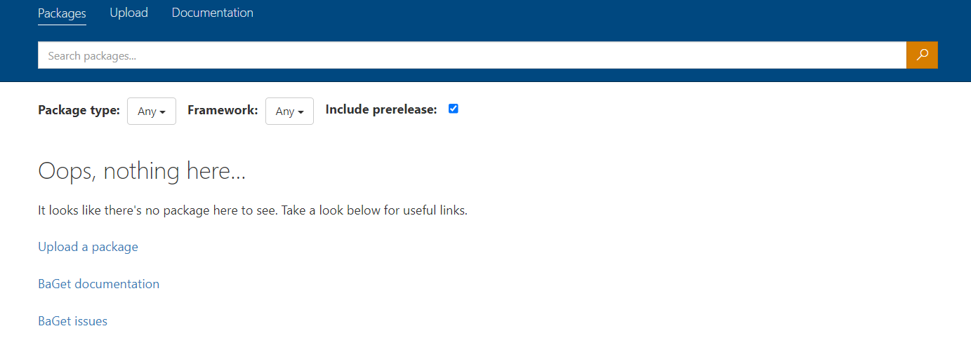 过去常用的包服务器是Nuget Server ,目前有基于.net core3.1的BaGet,最新版是v0.4.0-preview2,经过实际使用发现BaGet具有搭建速度快,稳定,功能基本够用的特点,符合当前需求,于是决定使用BaGet。