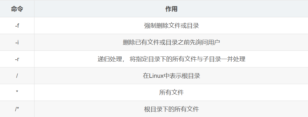 rm 命令可以删除一个目录中的一个或多个文件或目录,也可以将某个目录及其下属的所有文件及其子目录均删除掉