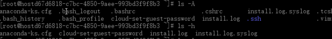 ls -A;列出当前目录下全部的文件,包括隐藏的目录和文件(但不包括 . 与 .. 这两个目录)