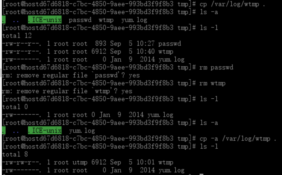 若目的地已经有相同档名的档案存在,则在复制前先予以删除再行复制,强制复制,默认是需要询问的,例如/tmp目录下已经存在wtmp,而再次复制wtmp时则需要询问是否进行强制复制