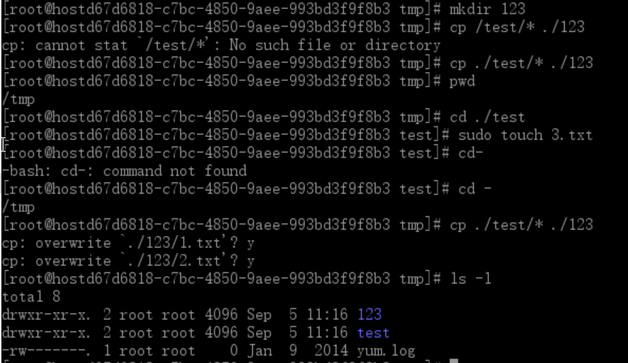 这里为了测试,我会先在/tmp/test 目录下新建1.txt,2.txt两个文件,将其复制到/tmp/123目录中,然后我再次在/tmp/test 目录下新建3.txt文件,再次复制到/tmp/123下面