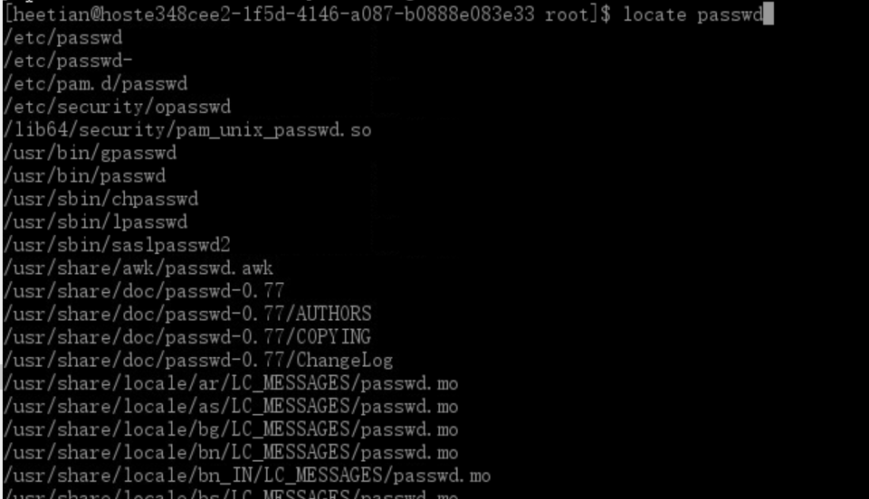 locate 使用很简单,只要后面跟关键字就行了,搜索起来也非常快速,因为它也是基于数据库的。
