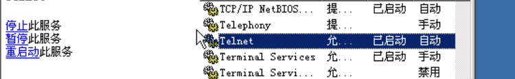找到Telnet服务,然后更改启动类型为自动,并且启动Telnet服务