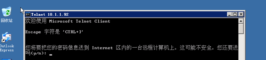 Client:到xp上,安装好Wireshark,然后Telnet server的IP,如telnet 10.1.1.92,然后就能看到欢迎界面