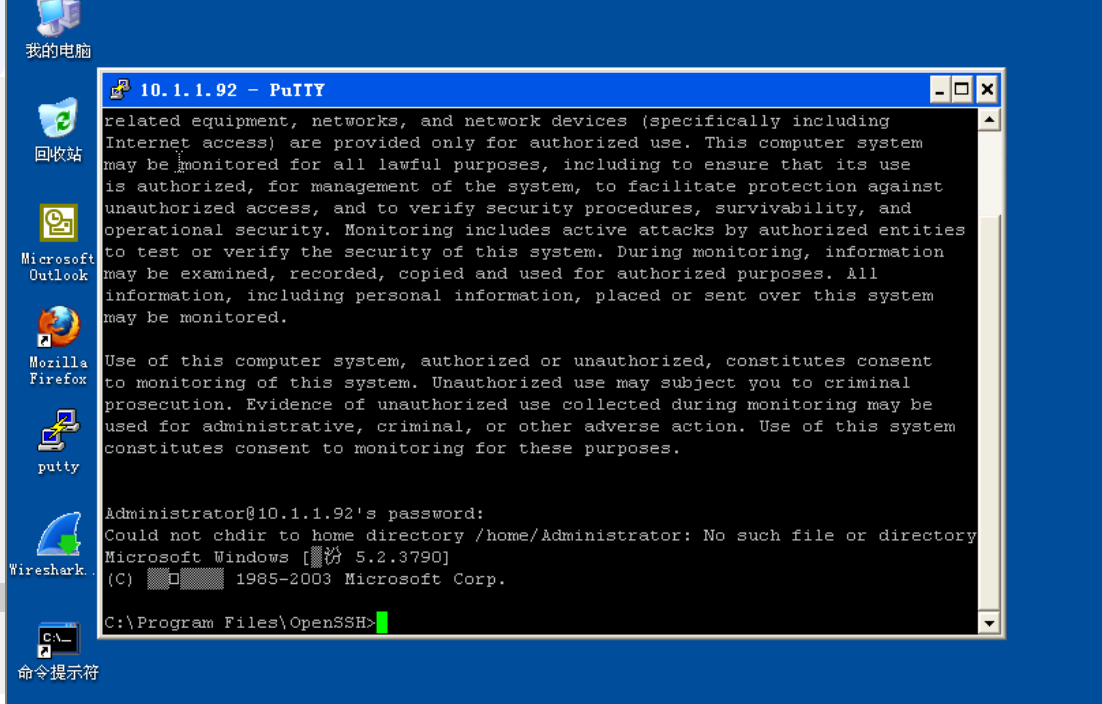 成功登录10.1.1.92,此时的操作如同在10.1.1.92上用命令提示符操作一样。