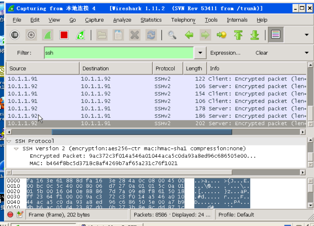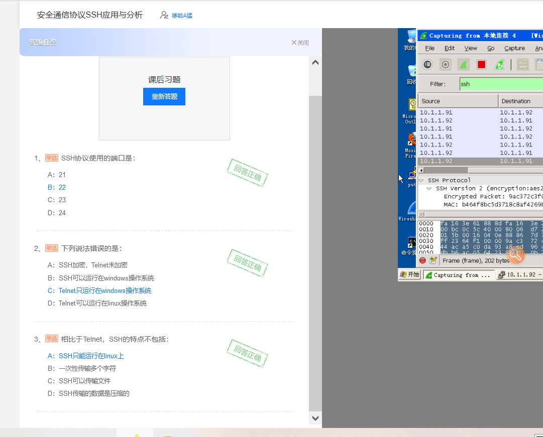 对数据包进行分析,比较使用Telnet和SSH有什么不同?