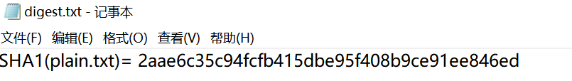 2. 计算plain.txt的哈希值,输出到文件digest.txt。