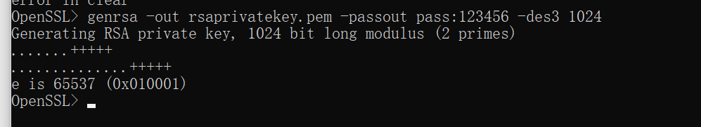 (1)创建1024位的RSA私钥,写入文件rsaprivatekey.pem,同时将私钥用3DES加密,并设置密码。